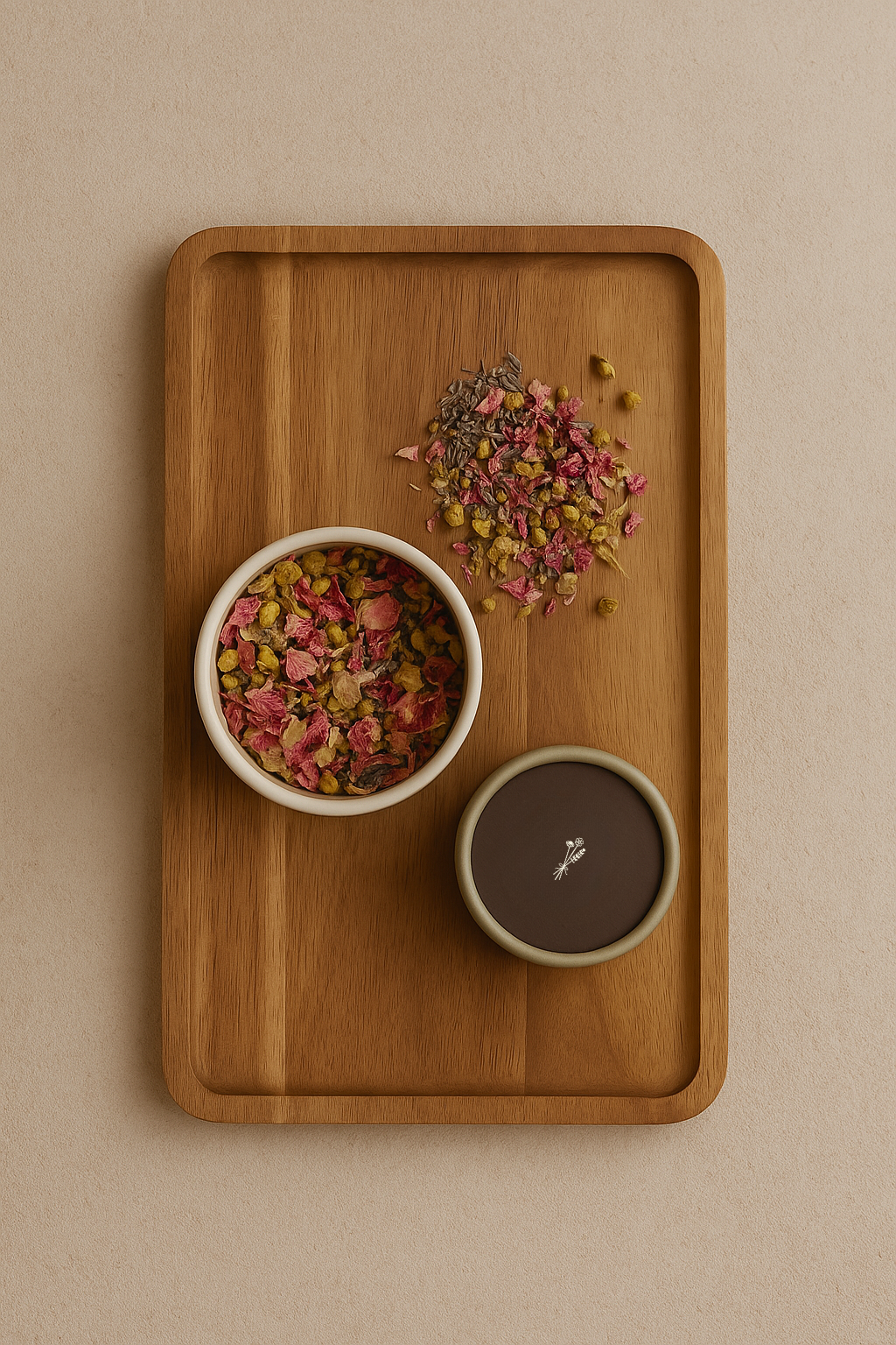 Lavendel (Lavandula angustifolia)*, Kamille (Matricaria recutita)*, Rosa (Rosa damascena)*